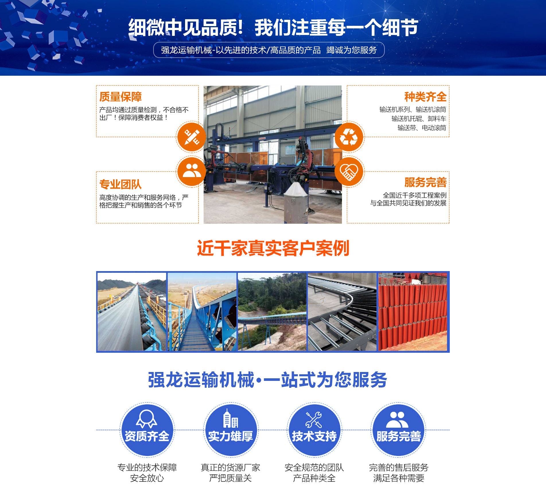 河北強(qiáng)龍運(yùn)輸機(jī)械有限公司位于衡水水市,成立于2019年,目前擁有300名員工。專(zhuān)業(yè)研發(fā)、制造和管理專(zhuān)業(yè)的人才。擁有一批集多元化的機(jī)械和電氣工程師的團(tuán)隊(duì),具備提供從解決方案、設(shè)計(jì)開(kāi)發(fā)、集成制造到安裝調(diào)試、培訓(xùn)指導(dǎo)、交付使用一站式的自動(dòng)化物流倉(cāng)儲(chǔ)的能力,以確保項(xiàng)目的時(shí)間、品質(zhì)和制造過(guò)程順利完成,長(zhǎng)期穩(wěn)定的協(xié)作供應(yīng)鏈。提供高品質(zhì)的非標(biāo)精密組件和標(biāo)準(zhǔn)組件。嚴(yán)格的控制管理流程,為客戶(hù)提供經(jīng)濟(jì)合理的規(guī)劃方案,實(shí)施科學(xué)的加工質(zhì)控體系,提供安全的自動(dòng)化設(shè)備,和完善的售后服務(wù)。我公司生產(chǎn)各種帶式輸送機(jī)系列、波狀擋邊大傾角帶式輸送機(jī)、TDSX型系列膠帶輸送機(jī)、DTII( ...